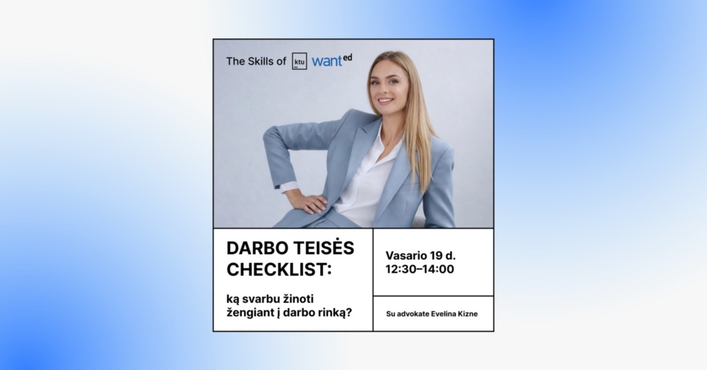 Kviečiame į seminarų ciklą „The Skills of WANTed“! Jis skirtas visiems, kurie ruošiasi žengti į darbo rinką arba joje dar tik pradeda savo profesinį kelią.
