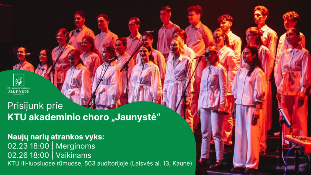 KTU akademinis choras „Jaunystė“ skelbia naujų narių atranką į ypatingą, 100-ąją savo gyvavimo sezoną!