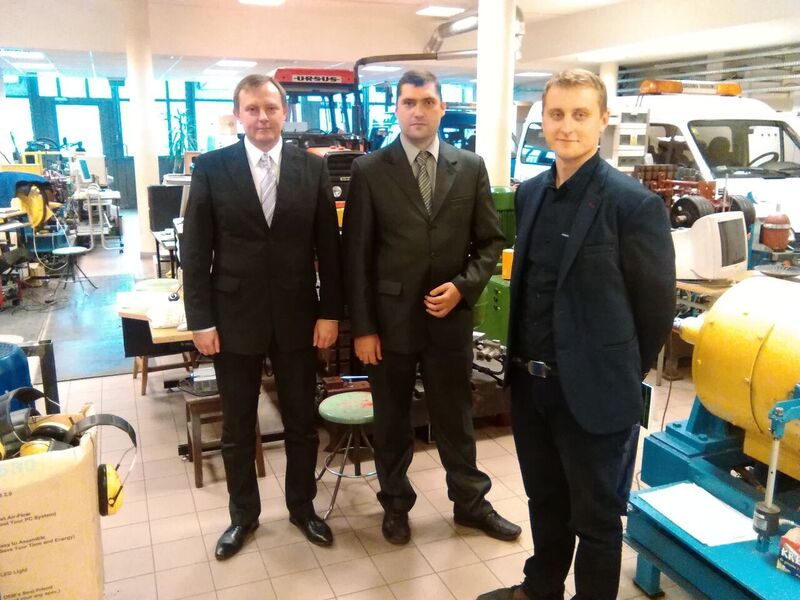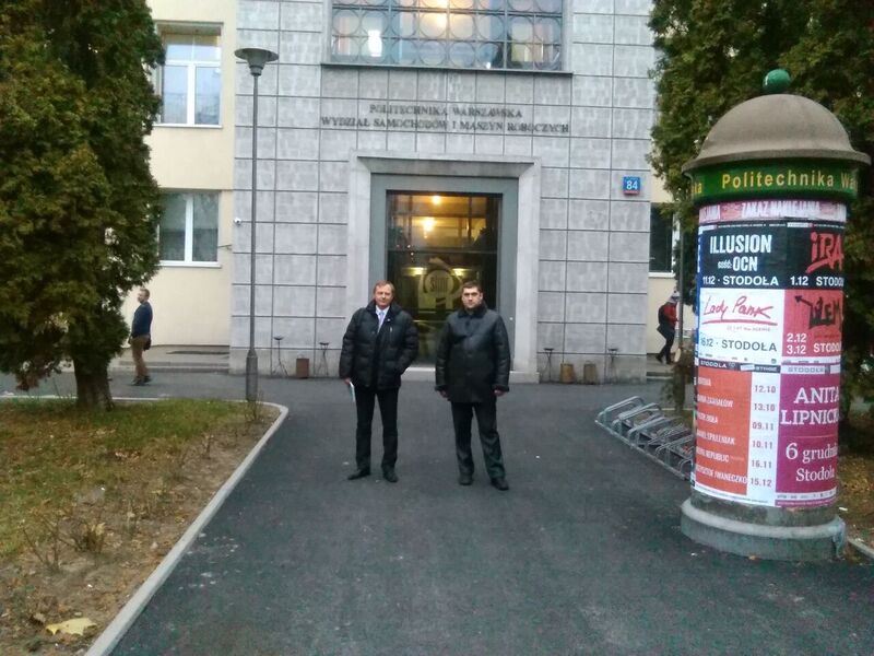 Transporto inžinerijos katedros vedėjas doc. Rolandas Makaras, doc. Robertas Keršys bei laborantas Povilas Gražulis lapkričio 25 d. viešėjo Varšuvos technologijos universitete.