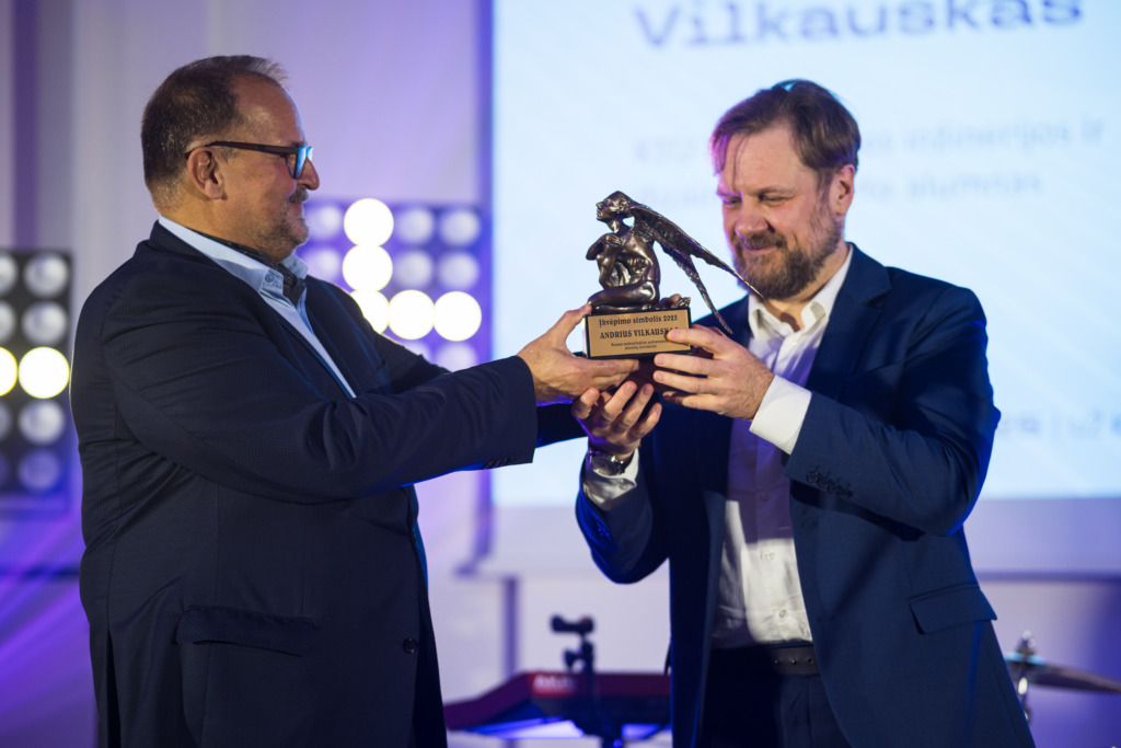 Vienas svarbiausių vakaro momentų – „Įkvėpimo simbolio“ skulptūros įteikimas. Tai nuo 2024 m. teikiamas apdovanojimas, įprasminantis išskirtinį alumnų indėlį į universitetą ir visuomenę.