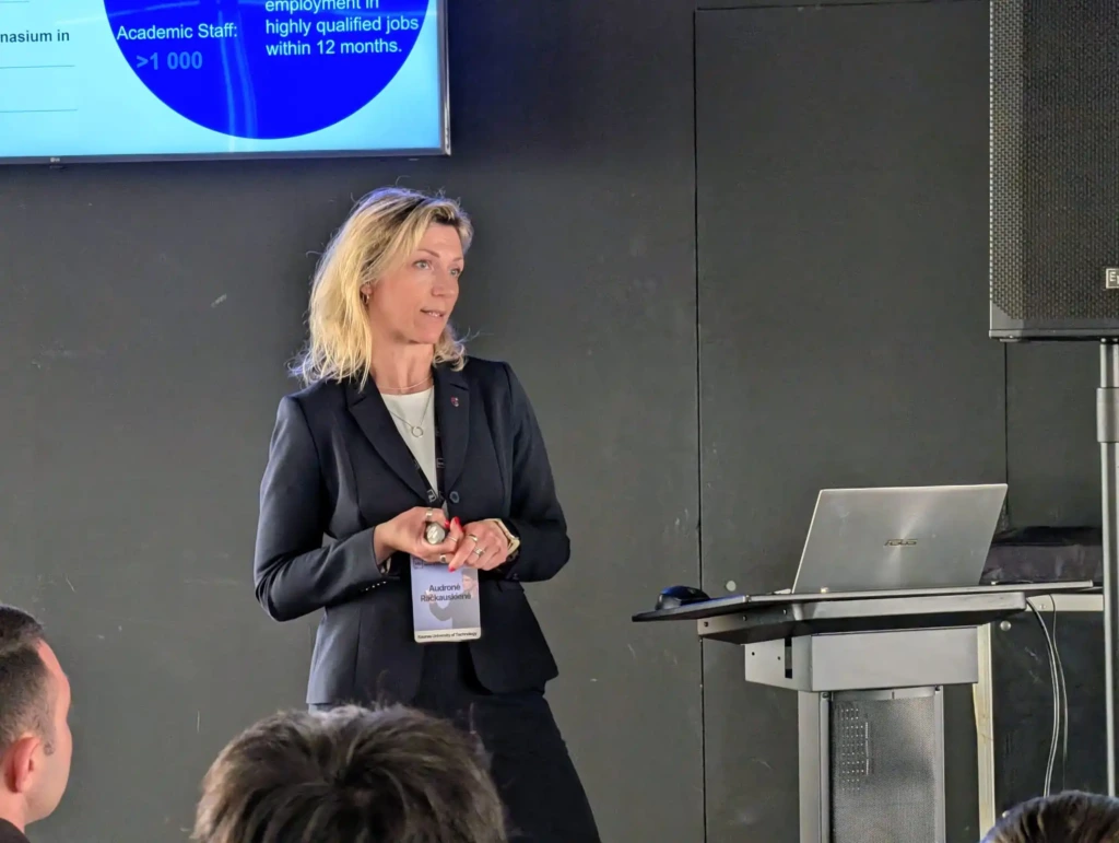 „Ateitis priklauso smalsiems ir drąsiems. KTU mums svarbiausia ne tik studijų programos, bet ir pats žmogus: jo palaikymas ir drąsa klausti bei ieškoti. Siekiame, kad kiekvienas studentas čia jaustųsi bendruomenės dalimi ir gautų viską, ko reikia, kad jo talentas skleistųsi Europoje“, – pabrėžė ji, akcentuodama žmogaus ir technologijų santykio svarbą.