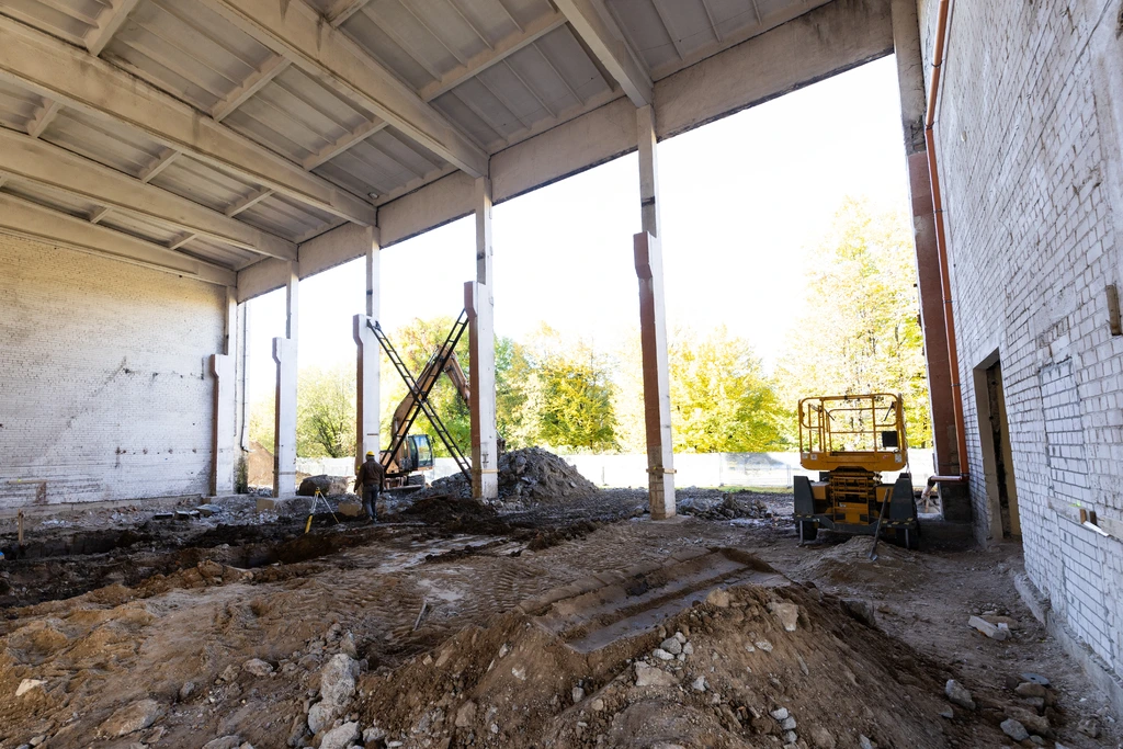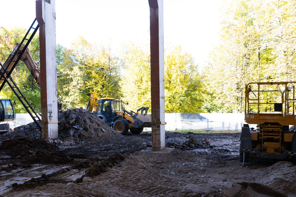 „Šiuo metu jau atlikti svarbiausi seno pastato konstrukcijų ardymo statybos darbai – įgyvendinti griovimo procesai bei dalinai įrengti ir sustiprinti pirmieji kapitaliai remontuojamo pastato pamatai“, – tikina G. Visockas.