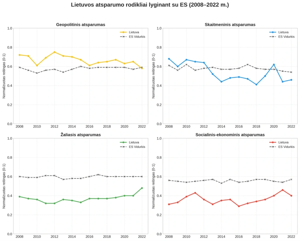 Lietuvos atsparumo rodikliai, lyginant su ES 2008–2022 m.
