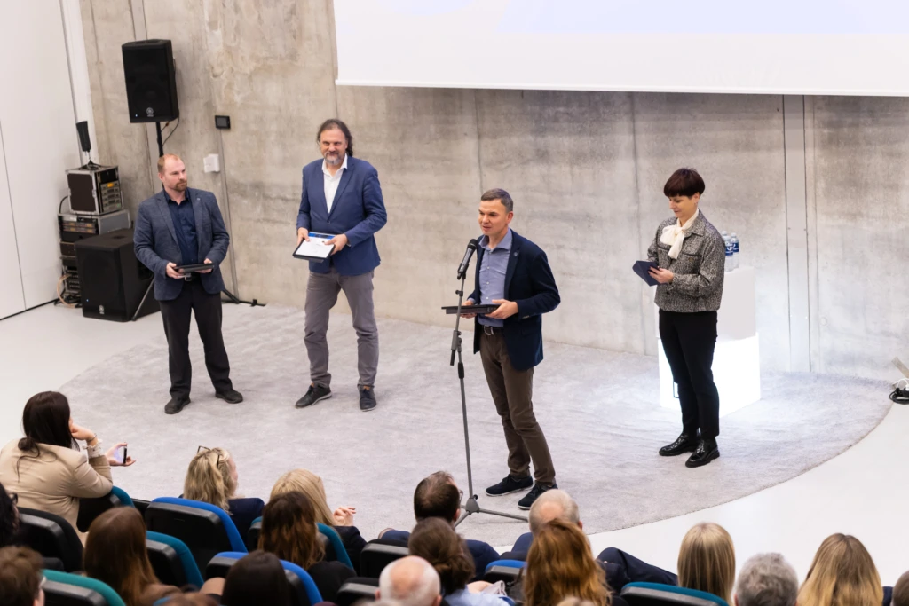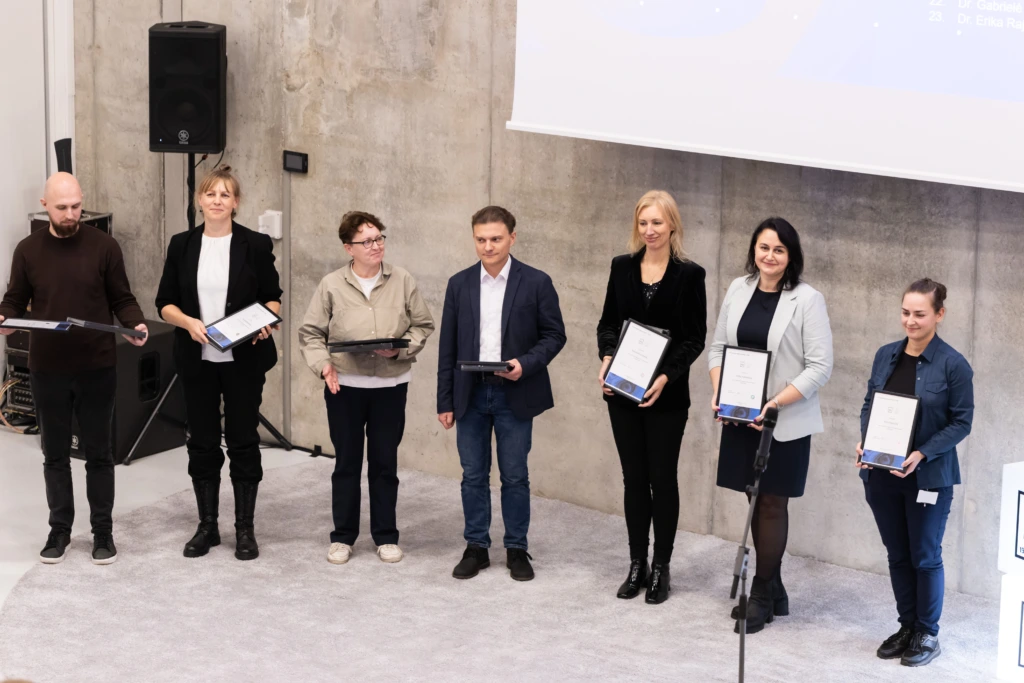 „Už jaunųjų tyrėjų ugdymą“ apdovanojimas įteiktas studentų tyrimų projektų vadovams Ekonomikos ir verslo fakulteto prof. Alinai Stundžienei, Matematikos ir gamtos mokslų fakulteto prof. Tomui Ruzgui, Ekonomikos ir verslo fakulteto prof. dr. Vaidai Pilinkienei ir Ekonomikos, verslo ir vadybos akademinio centro pr. stažuočių vadovams – prof. Danutei Vaičiukynienei ir Medžiagų mokslo instituto Paviršių ir plonasluoksnių darinių mokslo laboratorijos prof. dr. Tomui Tamulevičiui.