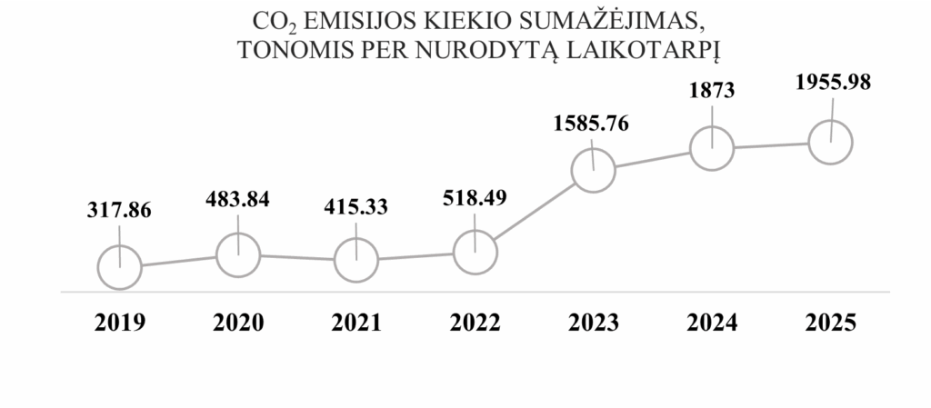 Įgyvendinant minėtus projektus, žemiau paveikslėlyje yra pateikiamas bendras CO2 emisijos sumažėjimas tonomis per metus.